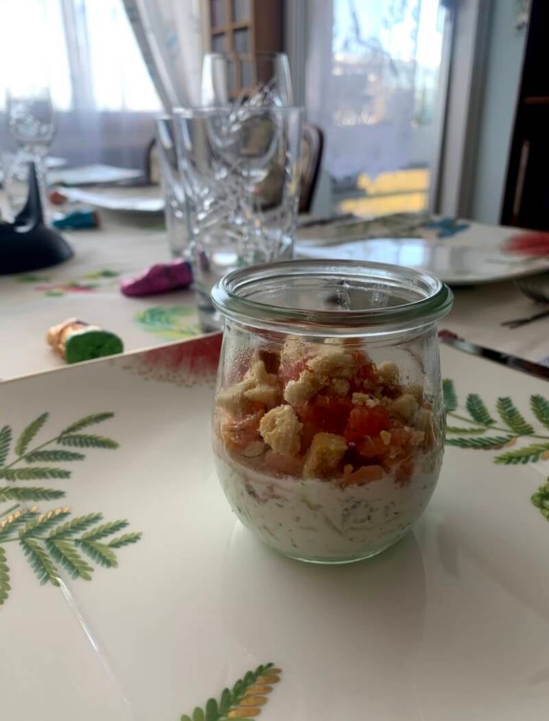 Yogurt concombre, saumon fumé, pamplemousse